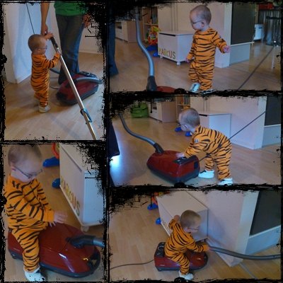 Der er helt klart en god fremtid i den dreng, han er allerede glad for støvsugeren