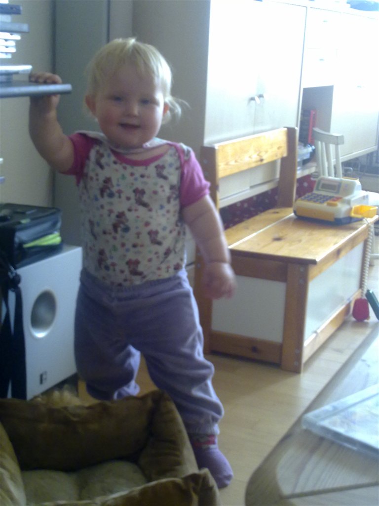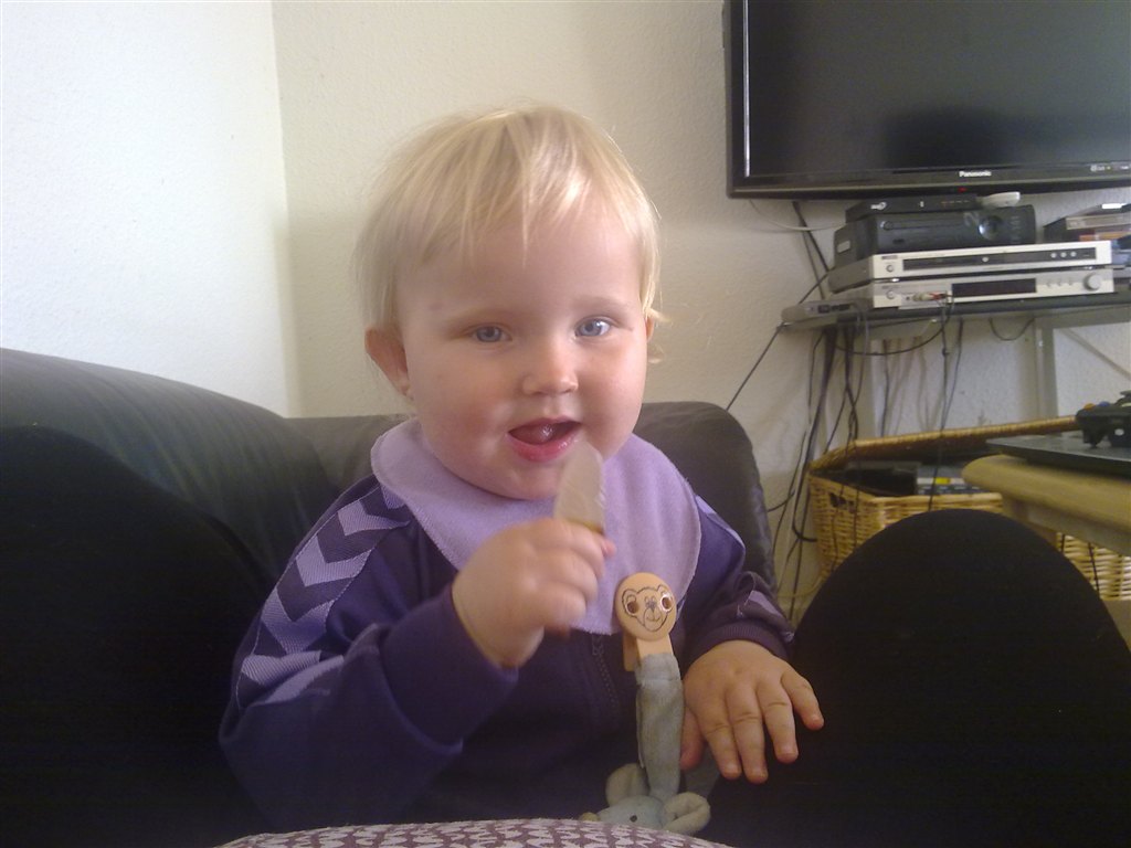 se min dejlige datter hun er 16 mdr og går bare derudaf.. hun er næsten altid et stort smil