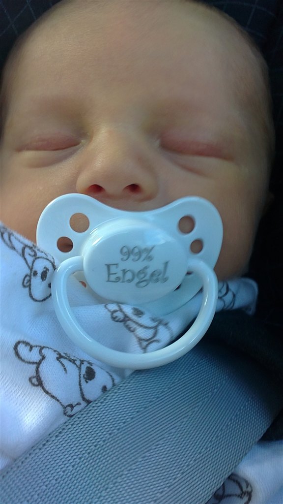 Sutten er vi igang med at lærer at bruge (da han bruger mit bryst som sut) men han har fundet ud af den ikke levere mad, så sutten er ikke så populær....