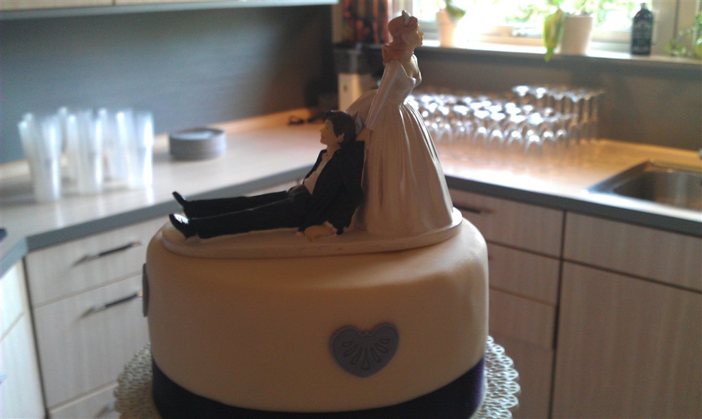 Jeg sagde til brudeparret at de skulle tage en etage af, når der skulle skæres kage, men har ikke hørt, hvordan det er gået.