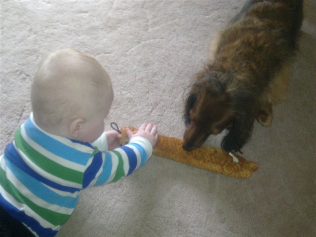 Silas er en drillepind uden lige.. Han har lige fundet ud af hvordan han kan drille begge hundene bedst.
