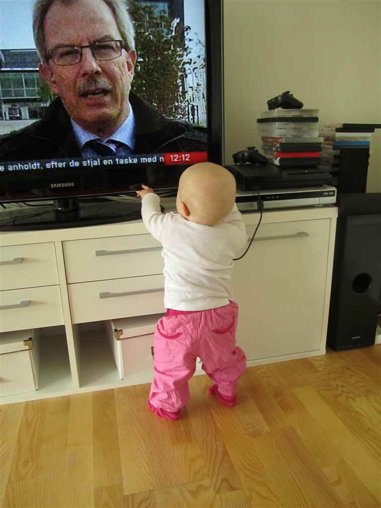og haha gad vide hvorfor alle børn synes det er så sjovt at prikke til fjernsynet