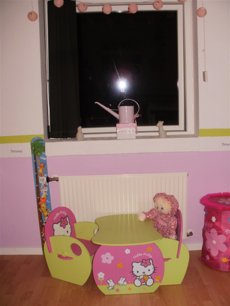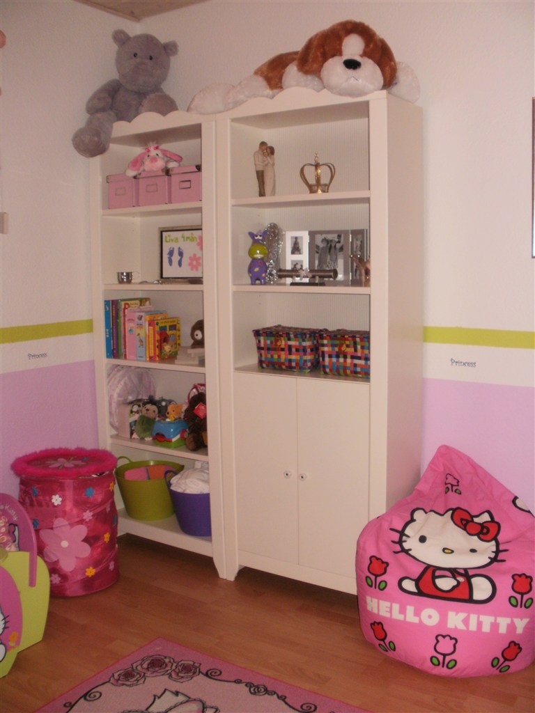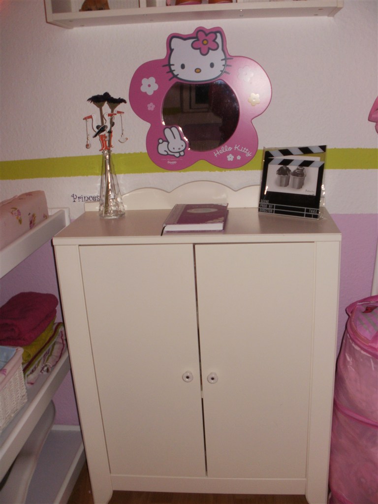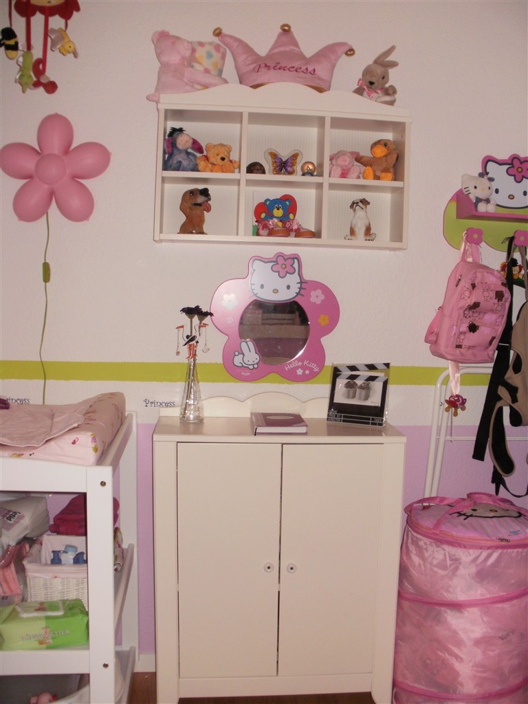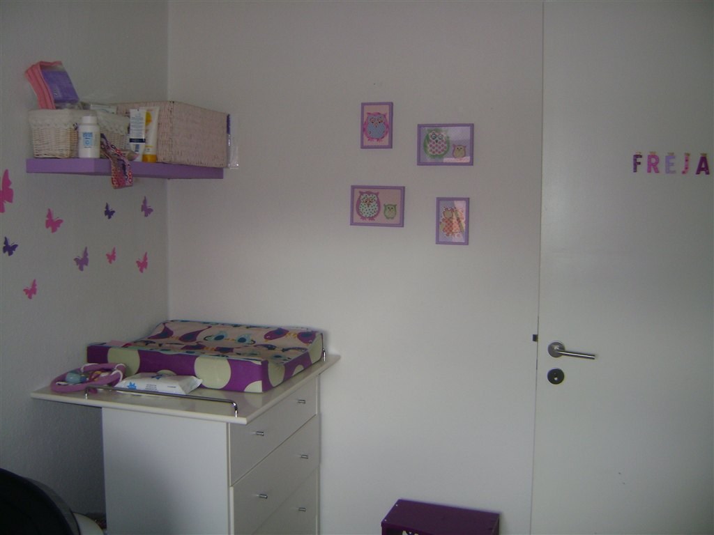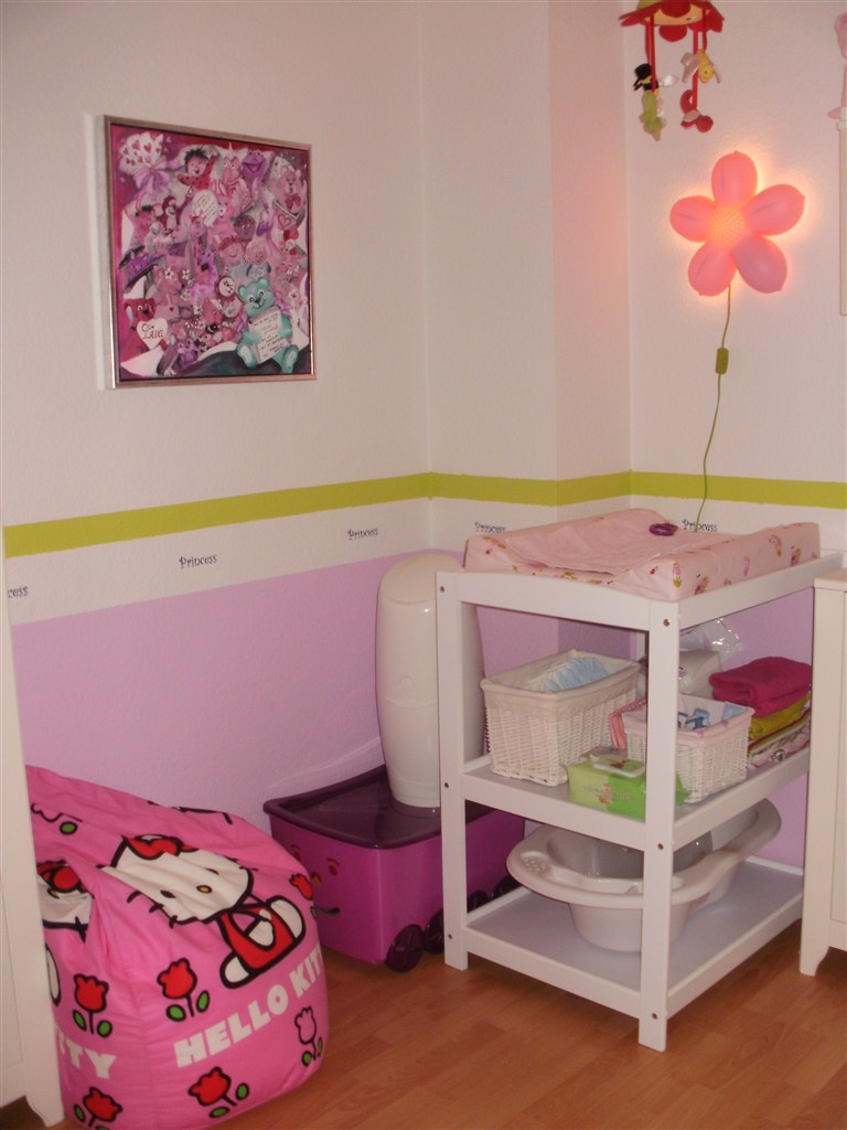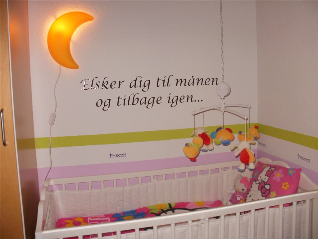 Her er der billeder fra min piges, dog er puslebordet taget ud og vi har fået et væghængt til toilettet i stedet.. Så nu står hendes hello kitty bord derovre i stedet så der er mere gulv plads