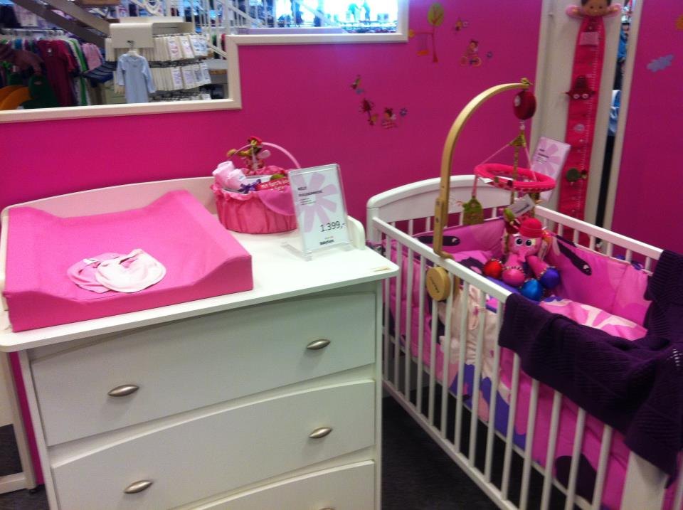 Var i Babysam idag med en veninde som skulle ha´ en gåvogn, og fandt sørme da lige farven til Julefisens værelse; Rosa! Snuppede lige en puslehynde med i netop den farve og sengetøj.