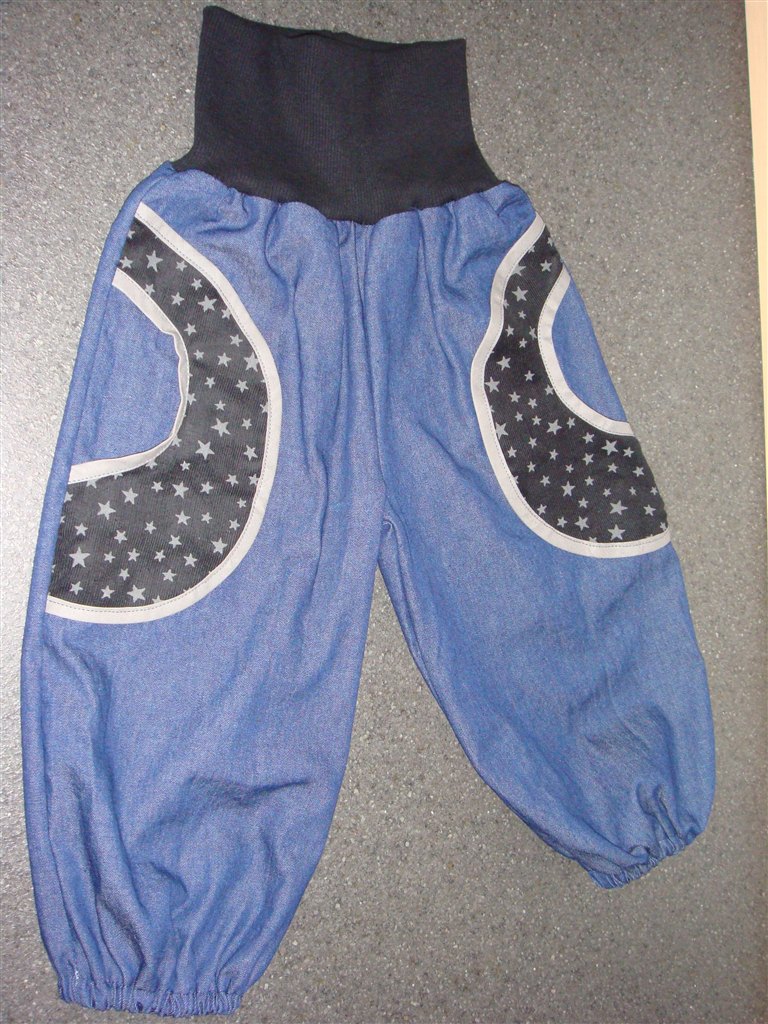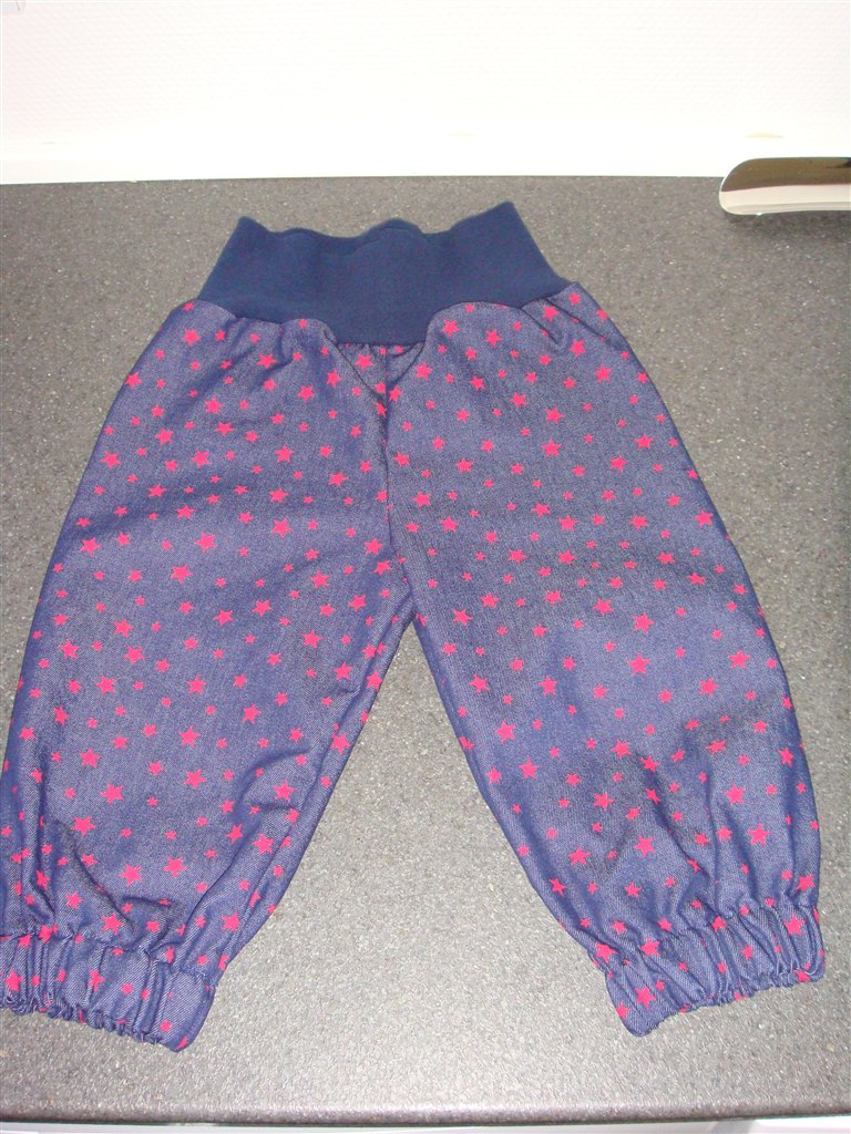- Et par smækbukser i denim med trykte stjerner, et forklæde i voksdug stof, samt 3 par tullebukser. Det første par med lommerne er første gang jeg har forsøgt mig med lommer, og jeg er egentligt blevet ret godt tilfreds med resultatet.