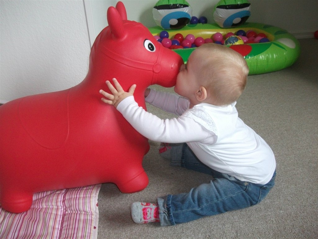 Hvor er hun sød Og super glad for sin røde hest