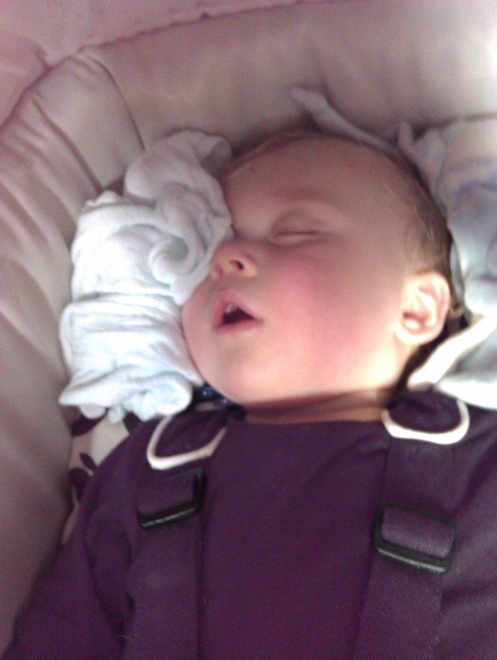Vi blev der indtil kl 13, og så kom han i barnevognen og med hjem. Vi havde kun gået i ca 2 min så lå han med åben mund og polypper og snork sov! Z z z z z z z! det så bare så sødt ud! lille mand som var helt udkørt af alle de nye indtryk!