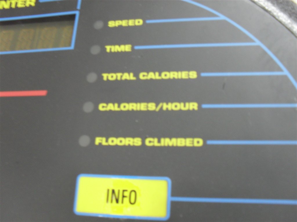 Den viser hastighed, tid, kalorier i alt, kalorier pr. time og etager.