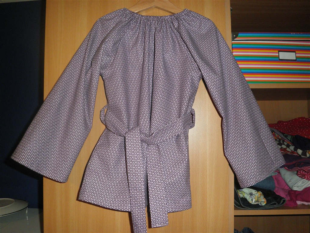 Mønsteret er fra Minikrea, så har jeg bare sat bånd om livet, det var der ikke på mønsteret. Ærmerne er ikke for lange, for jeg rendte tør for stof. Men når mine piger vokser ud af den, vil jeg bare sætte et langt stykke rib nederst i ærmet.