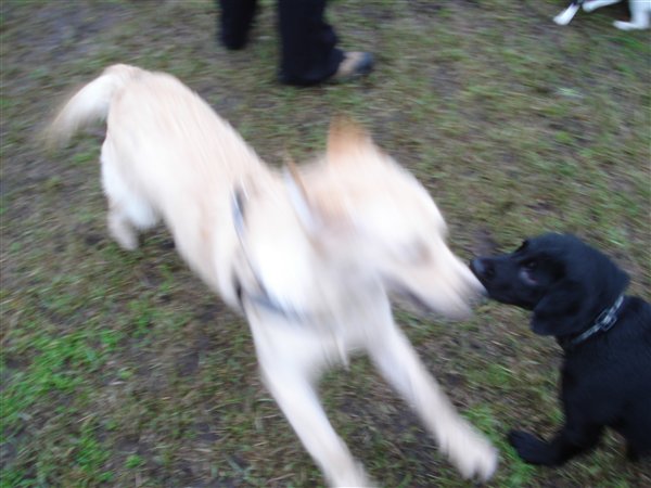 Han kan godt finde ud af det men han vil hellere grave, æde og lege. og så der flere der tager deres små børn med som så løber rund og leger og det synes jeg er forkert, for der mange hunde der er total børne glade og vil lege med og der er vores en af dem han bliver helt vild når de der børn løber rund og leger.