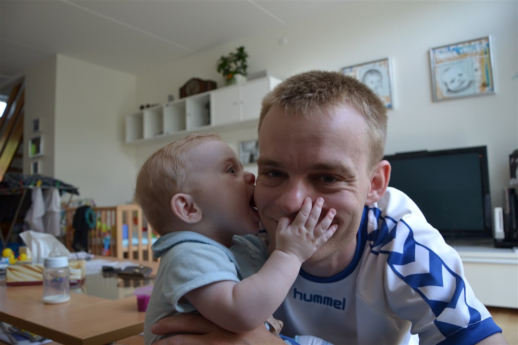 Jakob'sMor skriver: Så kom jeg på computeren. Men jeg har ikke noget søskende billed, har jo kun Jakob.. Så jeg deler lige et far-søn kærlighed Jakob mysser lige far