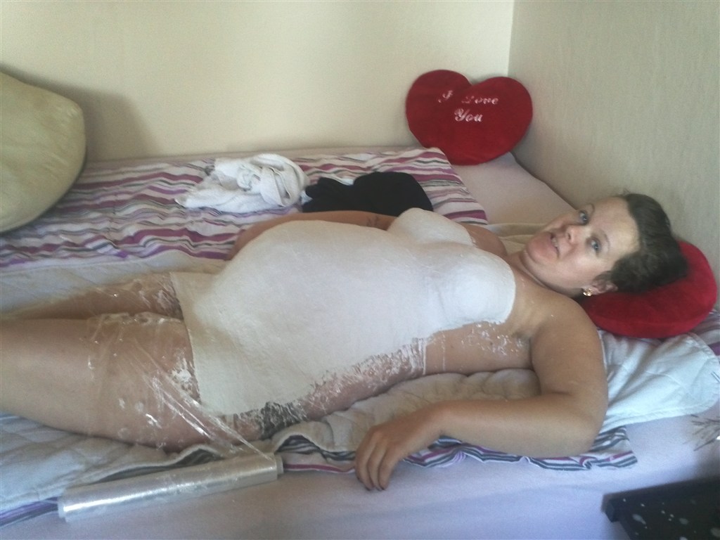 Jeg blev først rullet ind i madfolie, hvor min mor bl.a ligepludselig udbryder: "Du ligner en kebabrulle!" HAHA