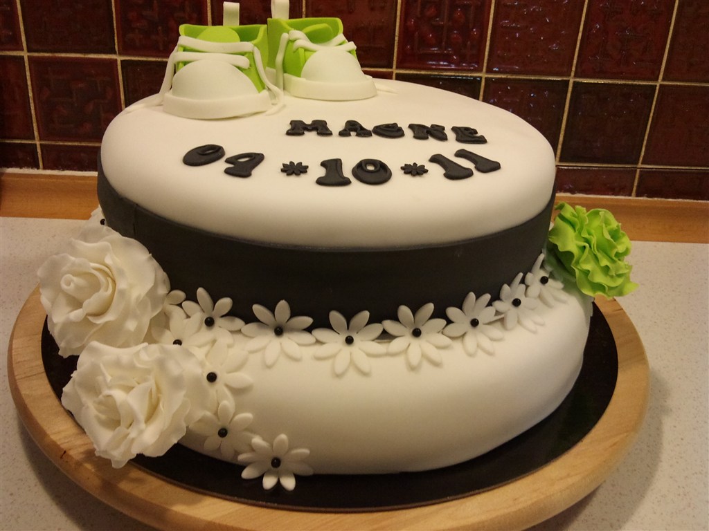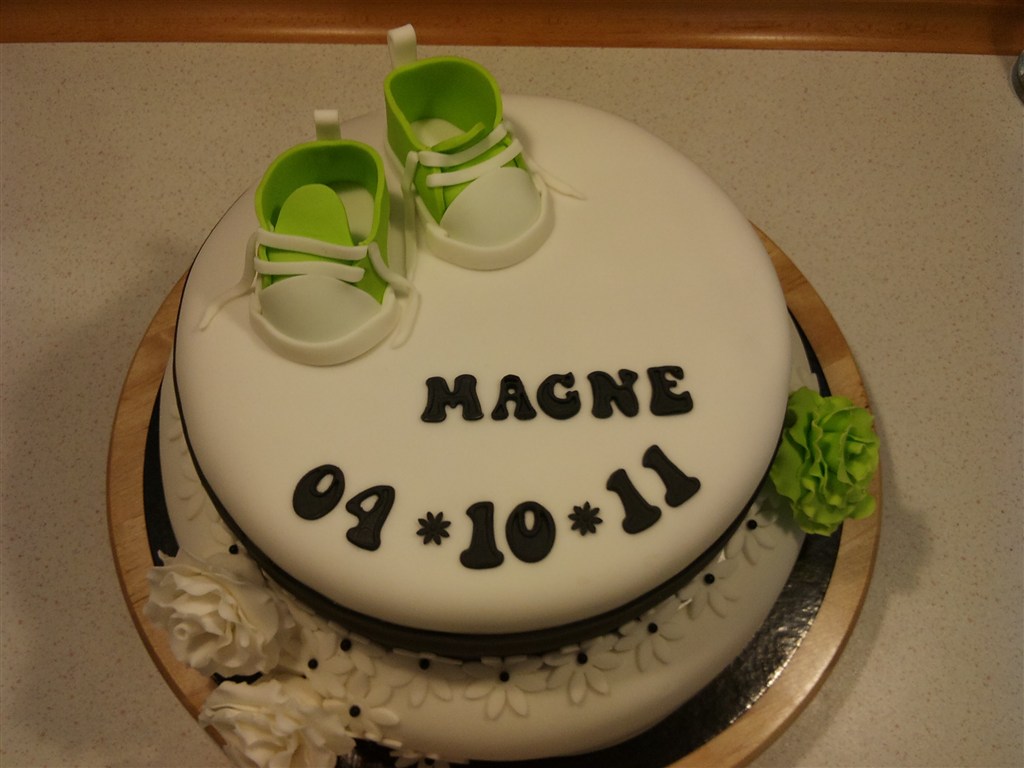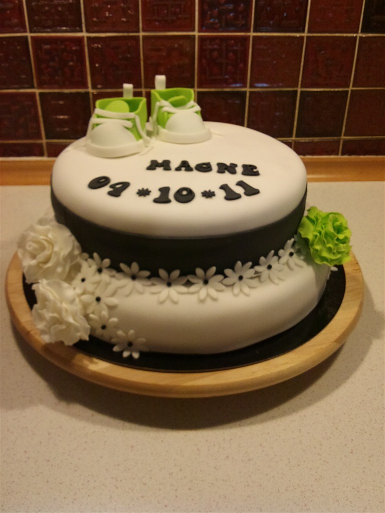 Her er Magnes dåbskage, den skulle være med sort, lime og hvide farver