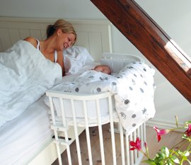 sabina22 skriver:i vores seng som vi blev anbefalet på hospitalet. om dagen i vuggen og barnevognen