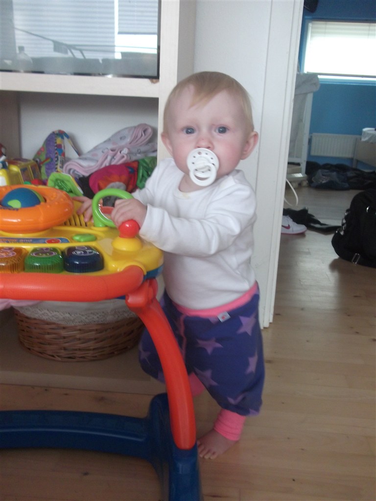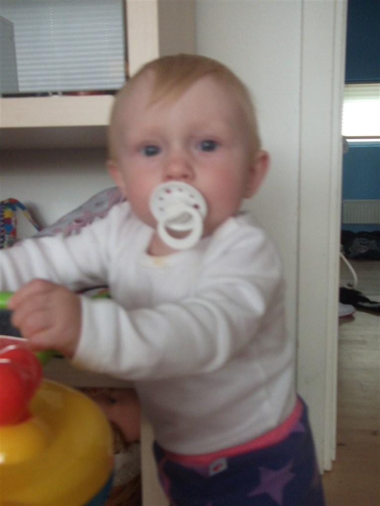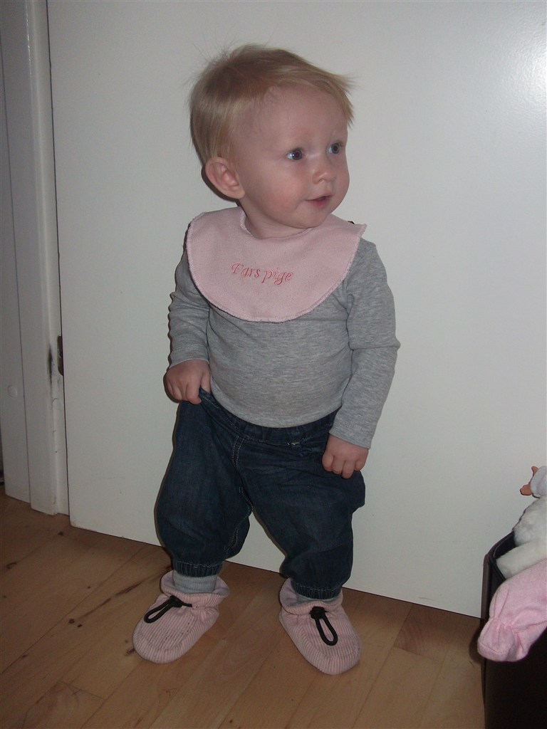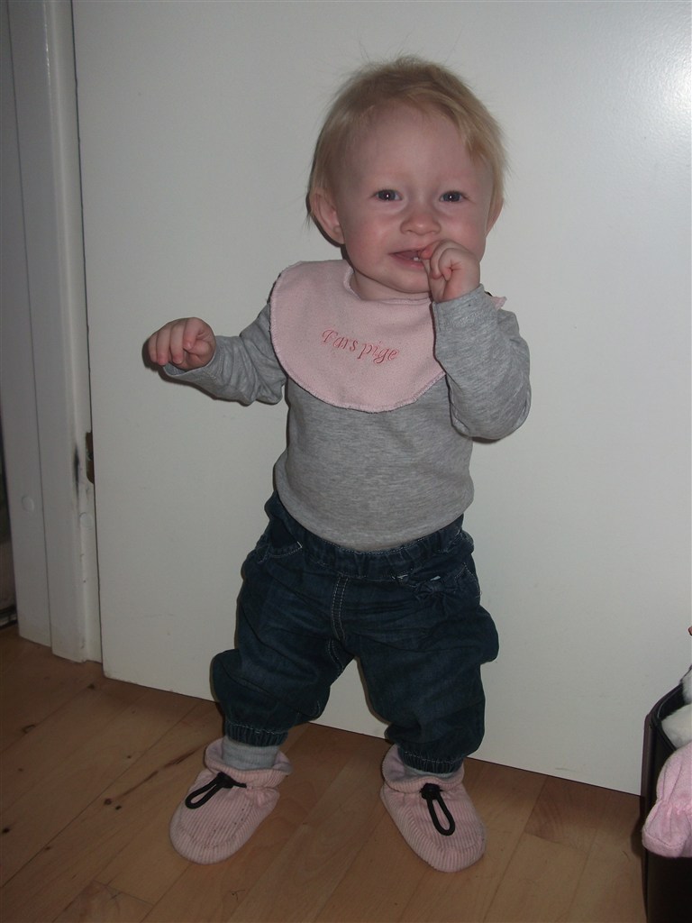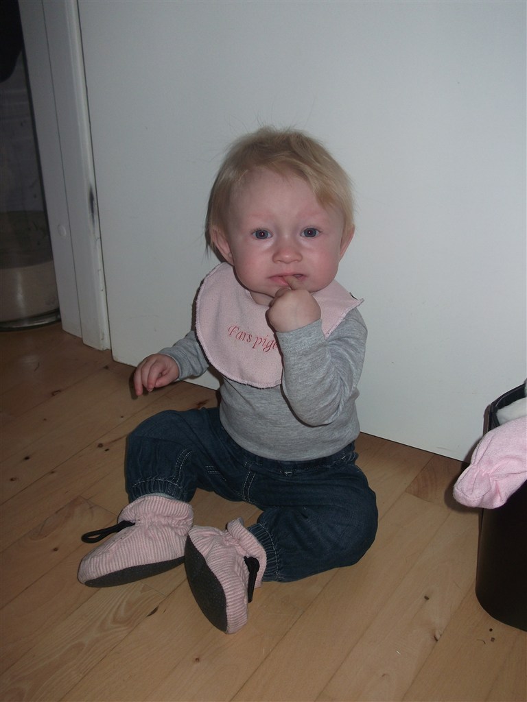 Hun er begyndt i vuggestue - hun er glad for at være der, men er dog en meget sur dame, når moren er så dum og "bare efterlader" hende der om morgen. Hun tager hendes to lure og elsker at putte i Deres barnevogne med hendes bamse, dyne og ikke mindst sutten.