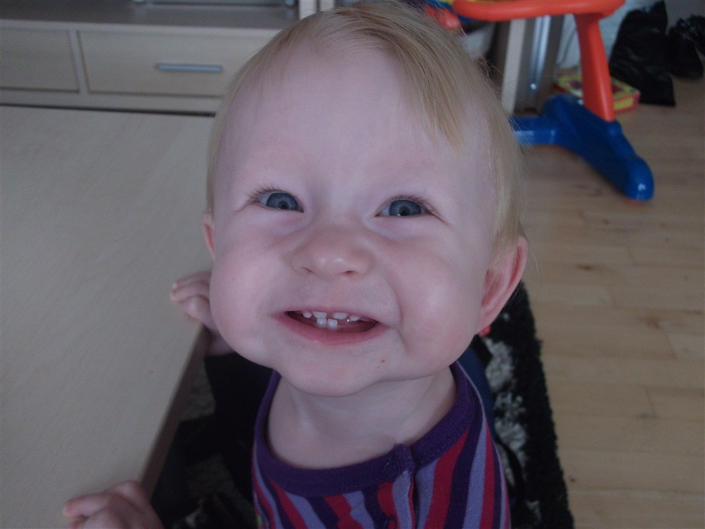 Laura har 6 tænder - 2 i undermunden og 4 i overmunden, og hun HADER at få dem børstet, men det skal de, og sådan er det bare