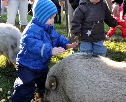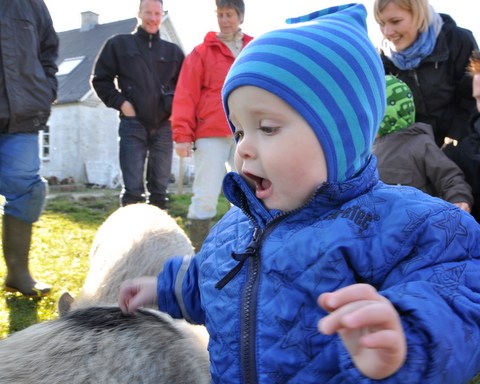 Vi fik en rundvisning, hvor alle dyrene blev kigget på, fodret og klappet - Anton ELSKER dyr, så han var i hopla hele dagen
