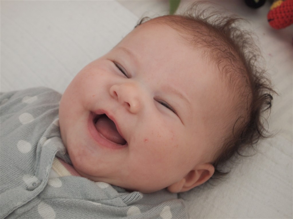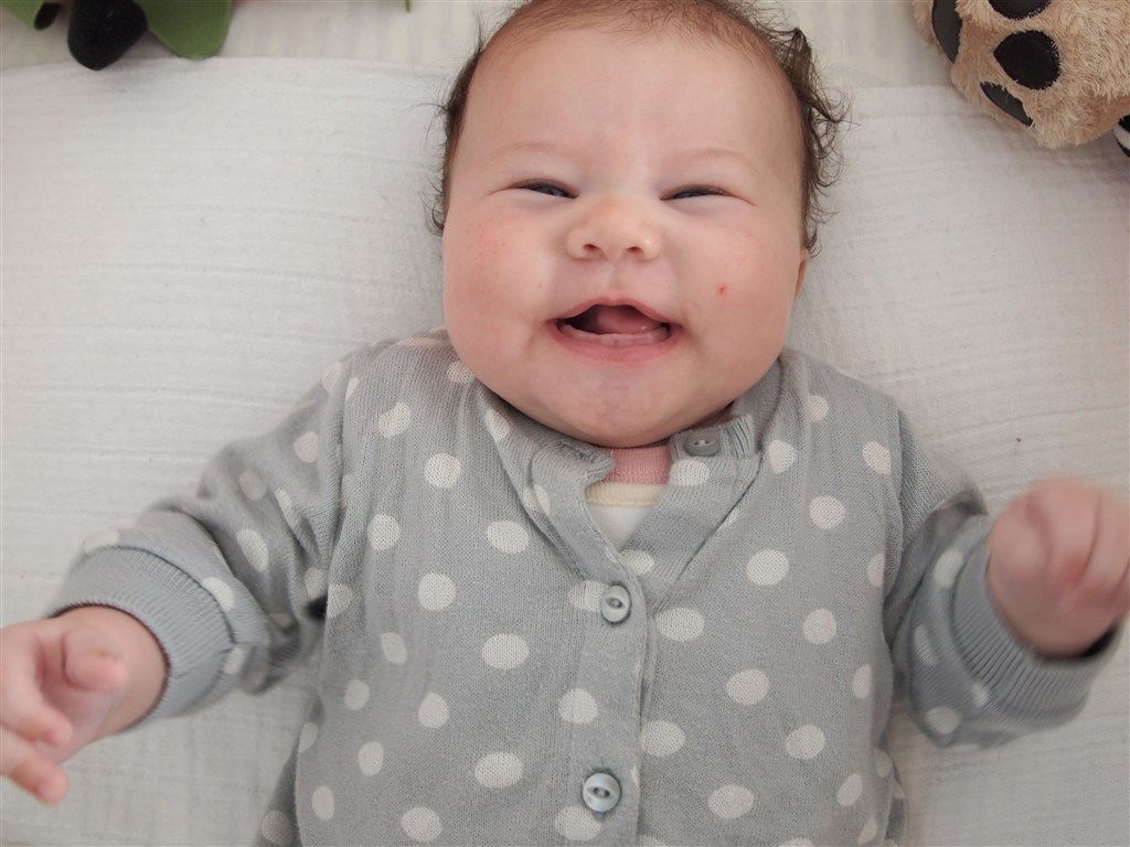 Hun pludrer, griner og spræller alle hendes vågne timer, og hun er blevet så god til at sove..