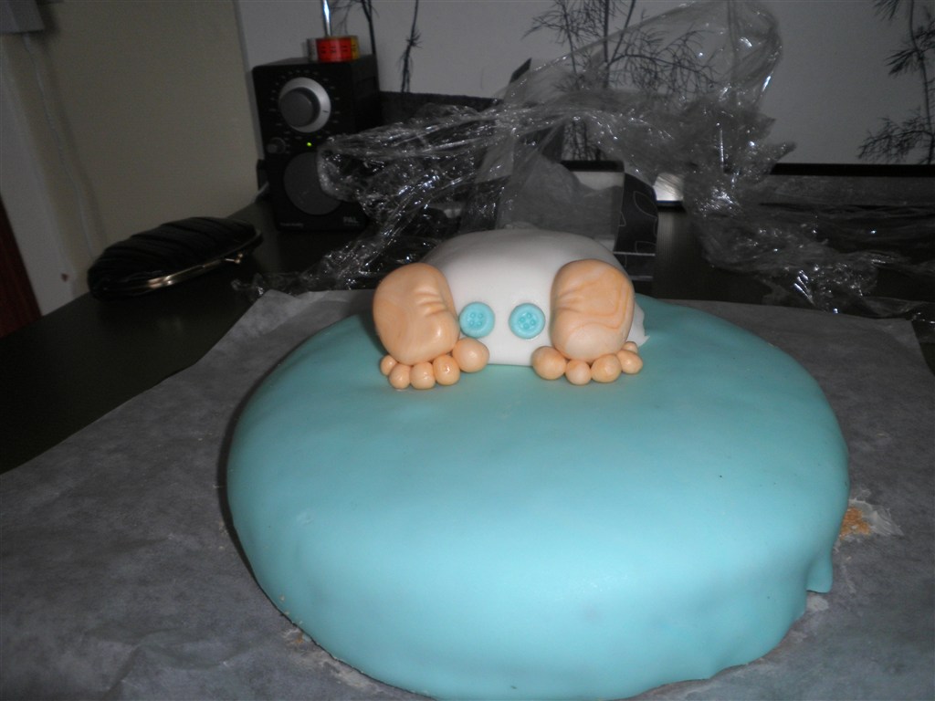 Jeg har lavet min første dåbskage. Det er min 3. kage med fondant og jeg synes den blev så sød! Den er lavet til min tvillingebrors søns barnedåb, dvs min lille nevø!