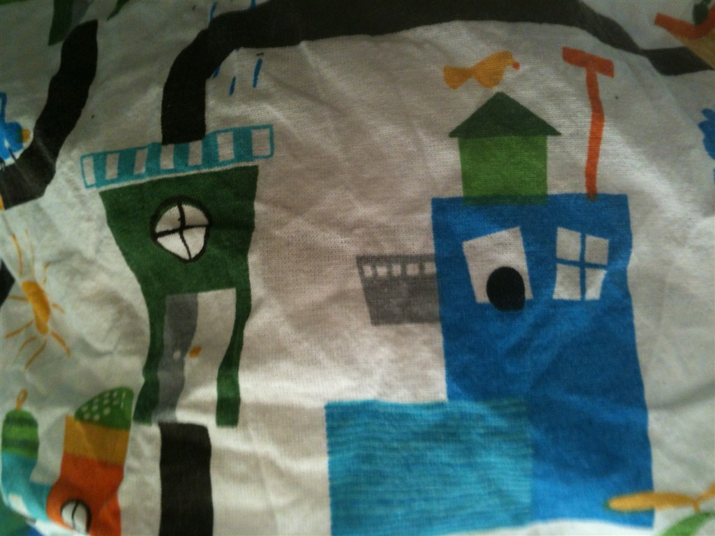 Billede 3-4: Sengetøj med huse fra Bilka. Pudebetrækket aldrig brugt, kun vasket 1 gang. Dynen brugt 3 gange.