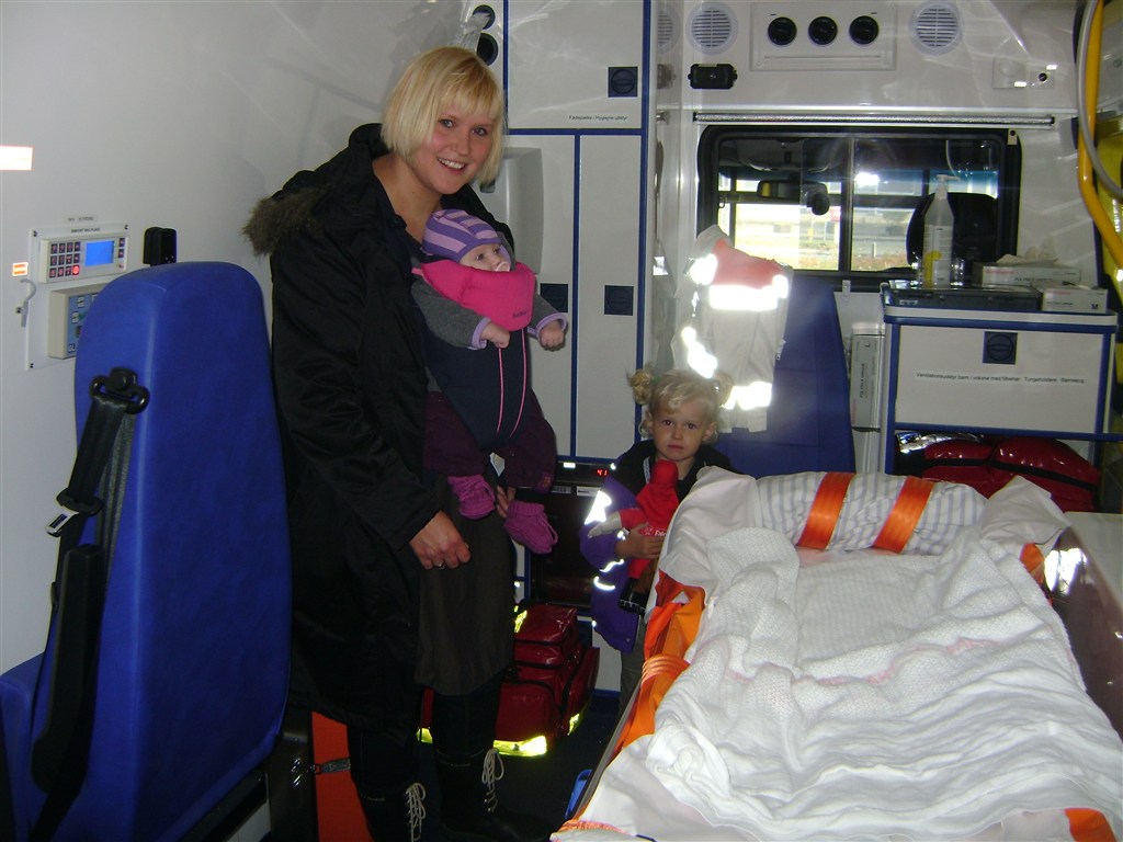 Før det gik vi til kiopraktor. Her fik vi mere styr på de ting som "gik galt" under den hurtige fødsel i ambulancen. Hun har haft noget led sin højre hofte, højre skulder og nakken måske pga at det var en falck redder og ikke en jordmoder som tog i mod hende. Men det er bestemt ikke falck redderens skyld han er stadig min store helt