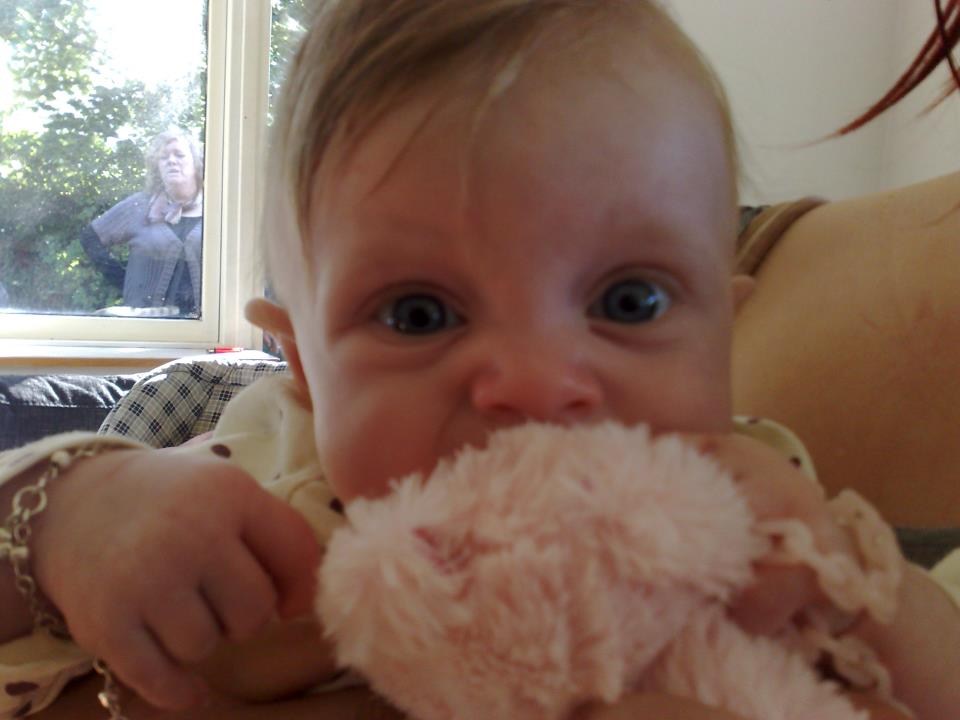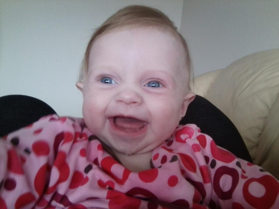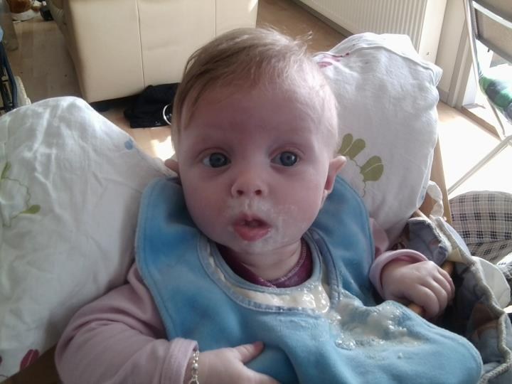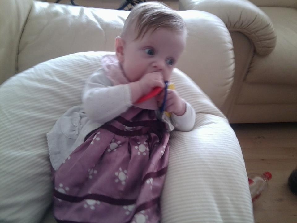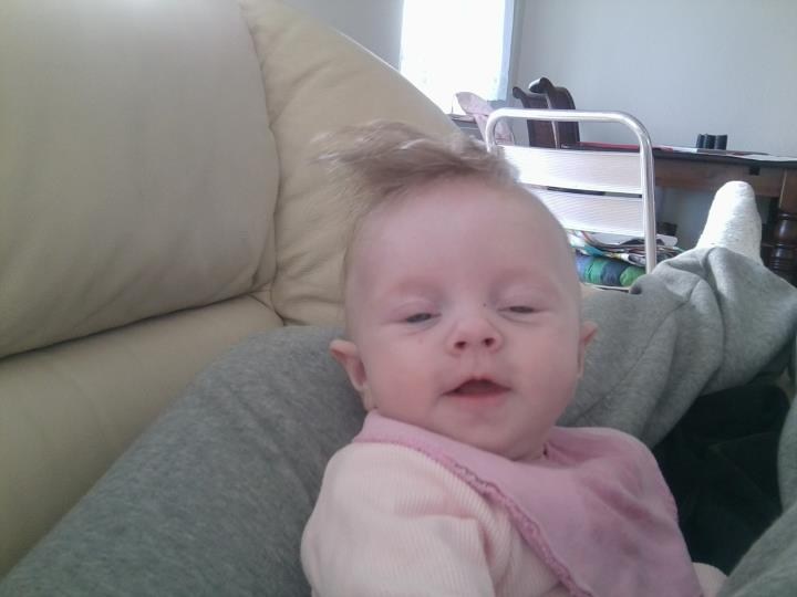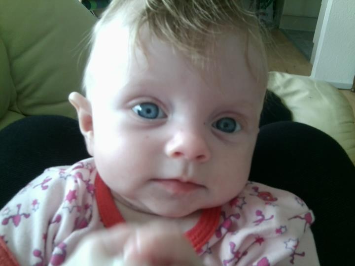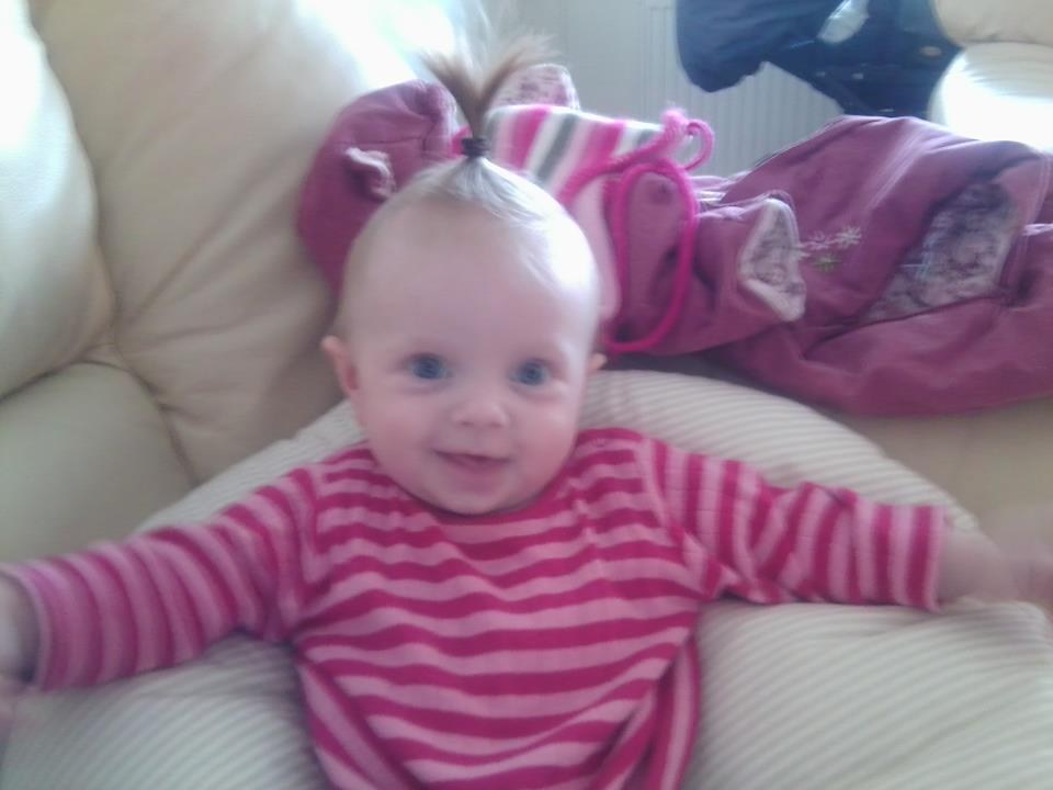 B&J skriver: Sikke en charme prinsesse hold op hvor er hun smuk og sååååå yndig med den lille hestehale i toppen og hvor hun dog smiler såå yndigt
