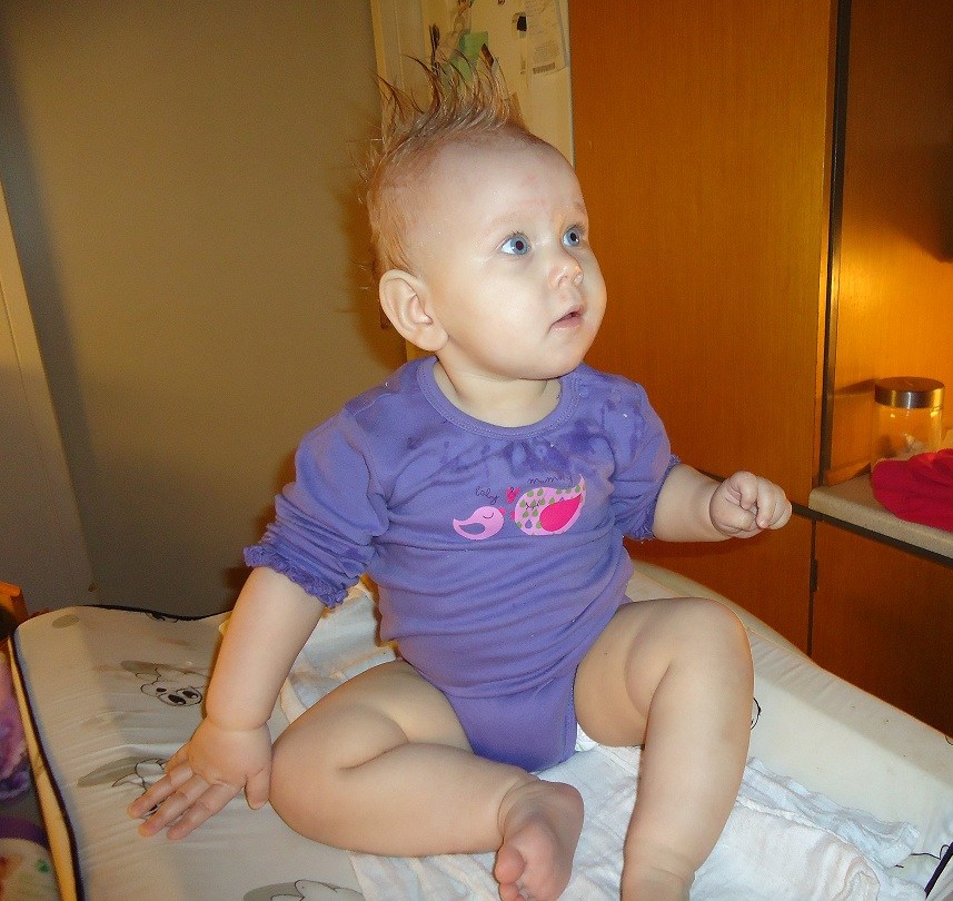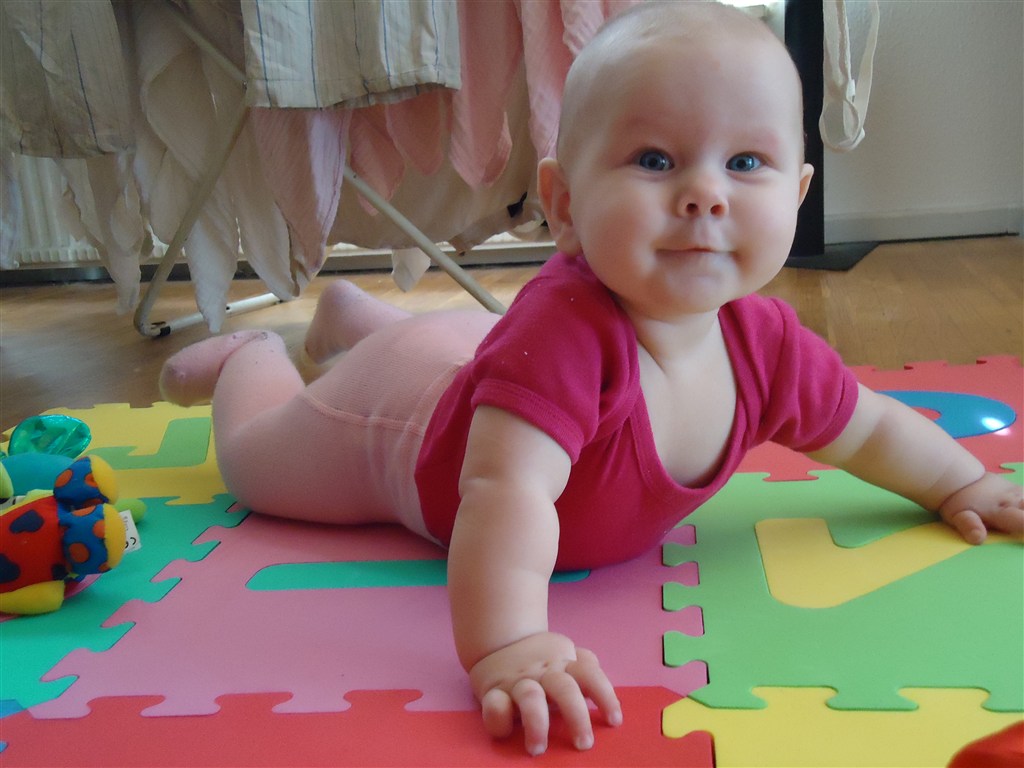 Hun er blevet en lille rod og skal være med i alt - og bedst af alt: hun nåede at lære at kravle inden hun blev 1 år, så nu venter vi spændt på at hun tager de første skridt
