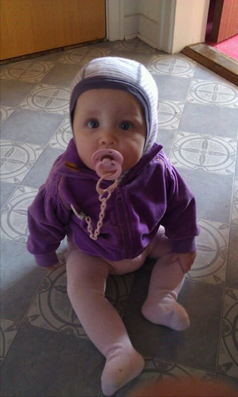 Mors dygtige pige, og sikke hun er vokset, hun´vejer nu 7 kg og er 69 cm
