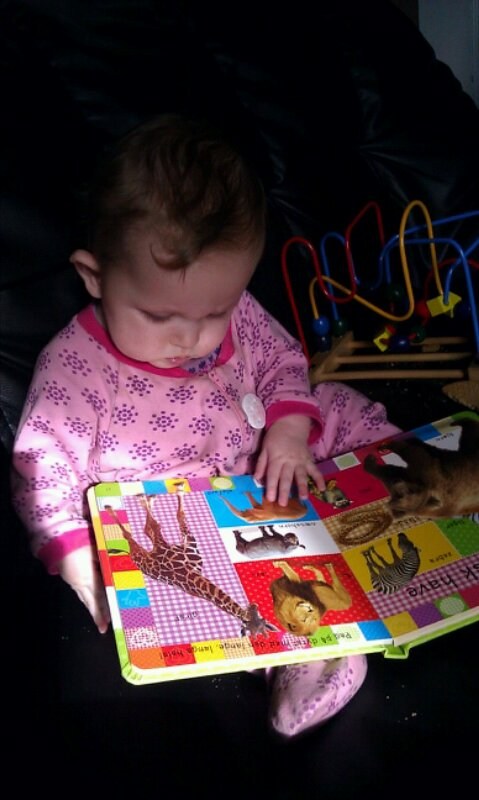 Så er hun begyndt og sige 'mam mam mam' (mad) og 'bar bar bar' (tror vi er far)