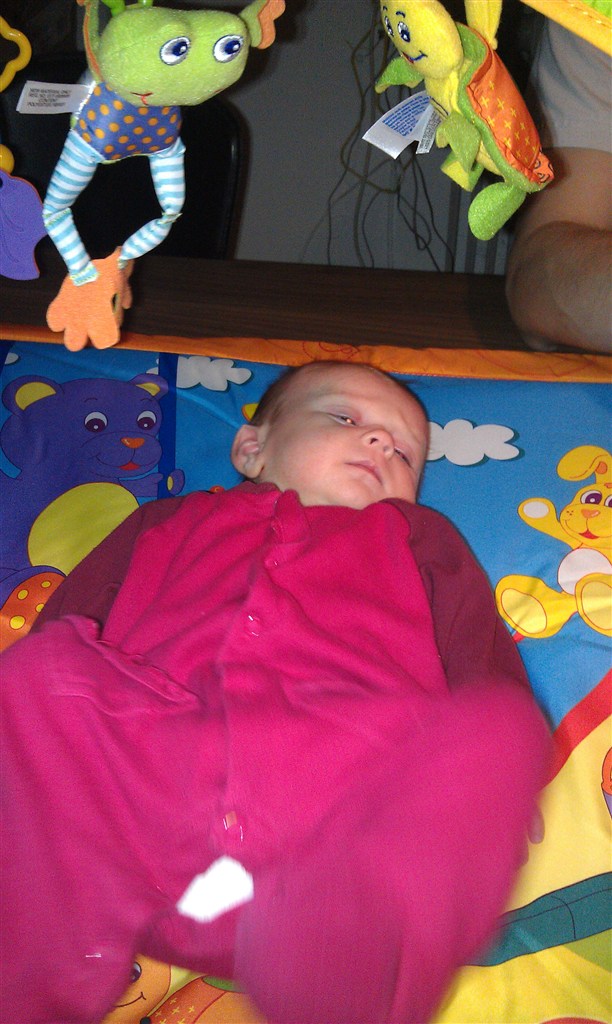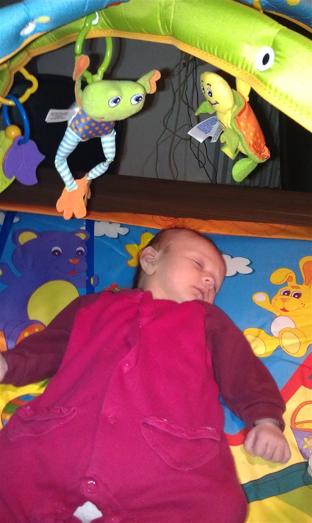 Ja hun var ikke ret aktiv da hun lå på aktivitetstæppet...