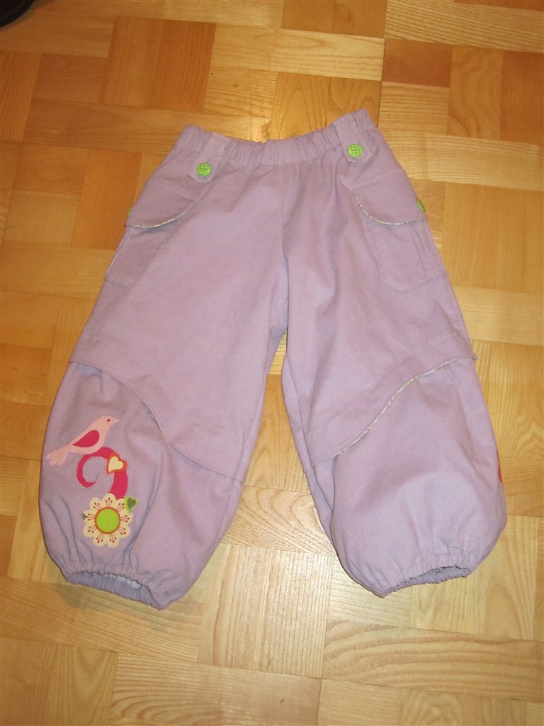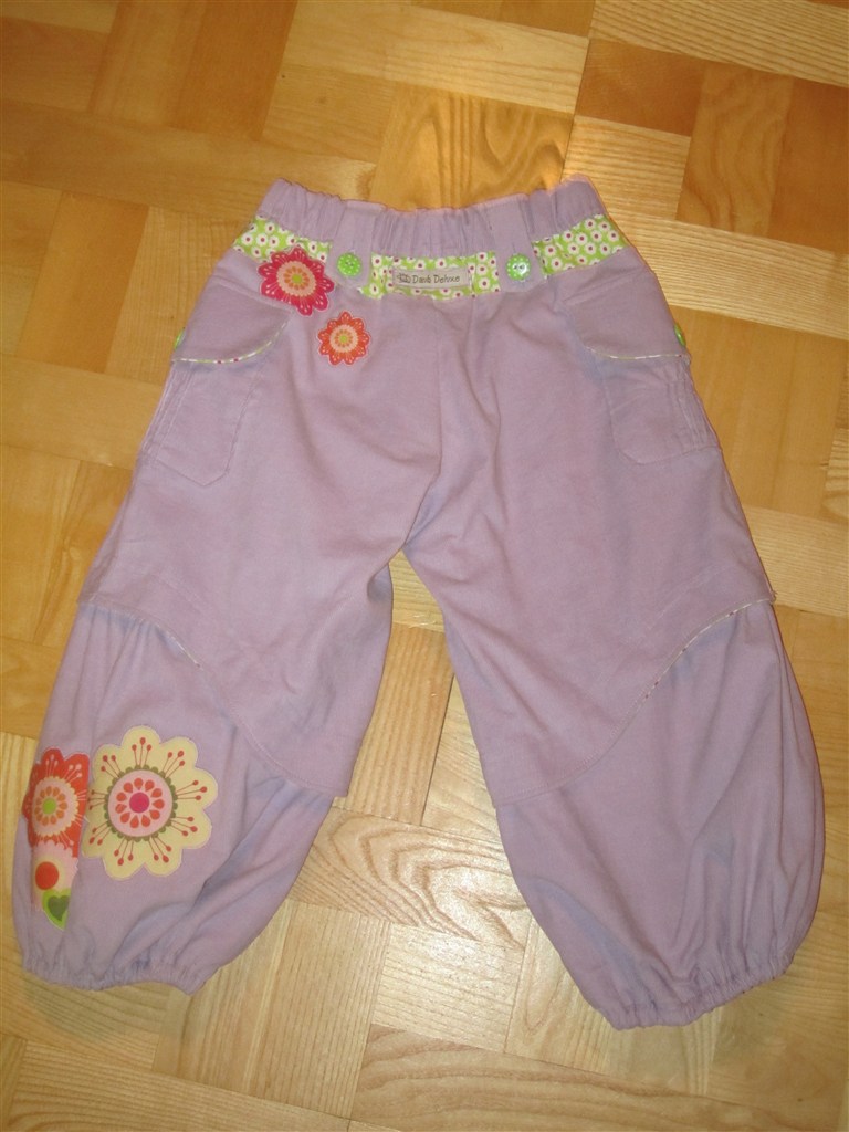 Så blev jeg endeligt færdig med Frejas nye bukser - det har også taget mig 14 dage af lave mønstret og sy dem. Jeg har heller ikke så meget tid til at sy, men alligevel... de har trukket tænder ud. Jeg håber hun bliver glad for dem. Se lige bort fra blå markeringer etc. på bukserne - det er bare hjælpelinier, de går af i vask.
