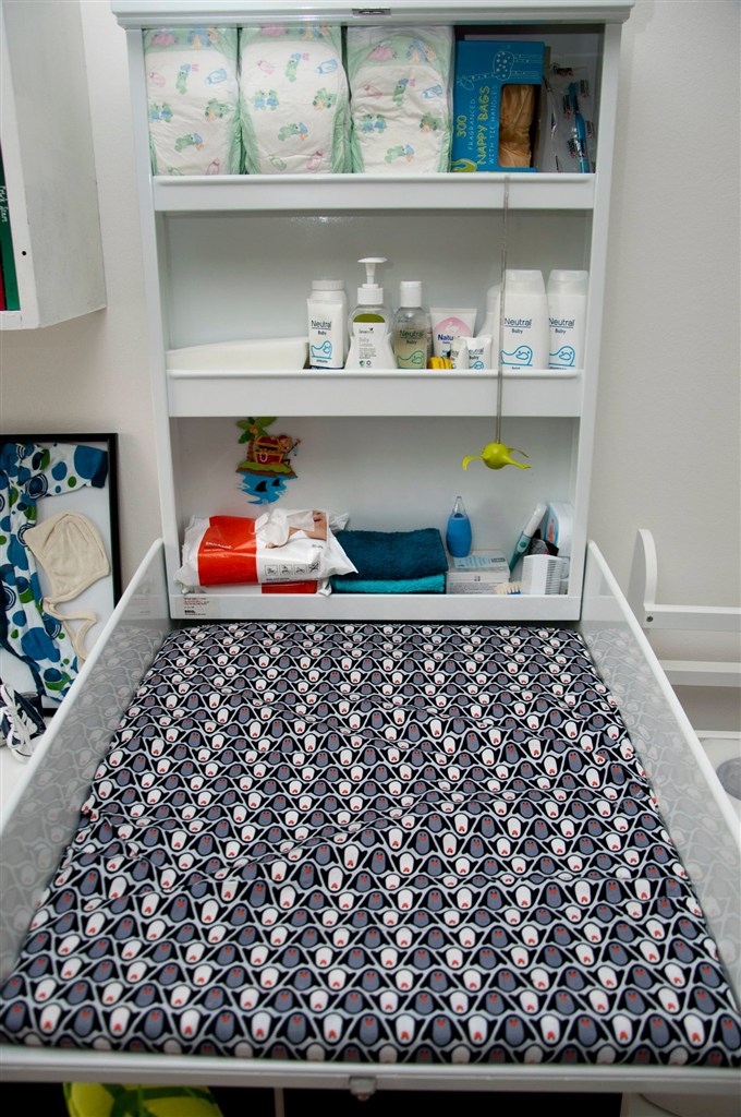 jeg har selv samme puslebord.. og jeg syede et betræk til puden... og smækkede en wallsticker på fronten..
