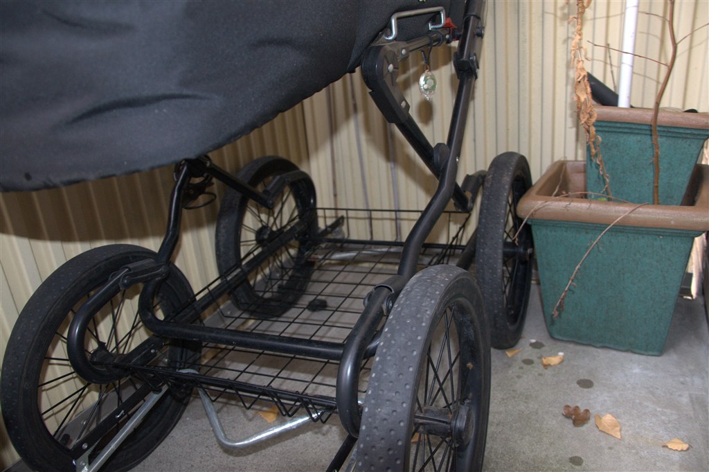 jeg fik en barnevogn forærende efter villads blev født. den har stået på altanen, men det ene hjul er fladt, der er nogle knapper der ikke kan lukke og selve barnevognskassen den er i det heletaget ikke særlig god og den er jordslået.. men stellet og hjulene (hvis der kommer ny slange i. fejler ingenting..