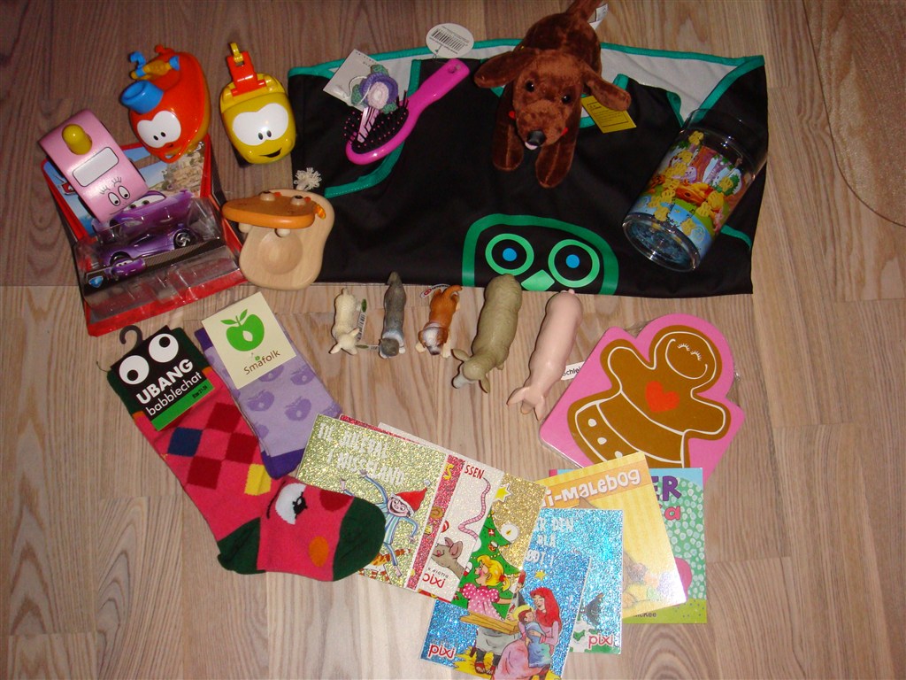 I får lige et billede af den uden indhold, et billede af de 24 pakker og et billede af kalenderne med gaver i.