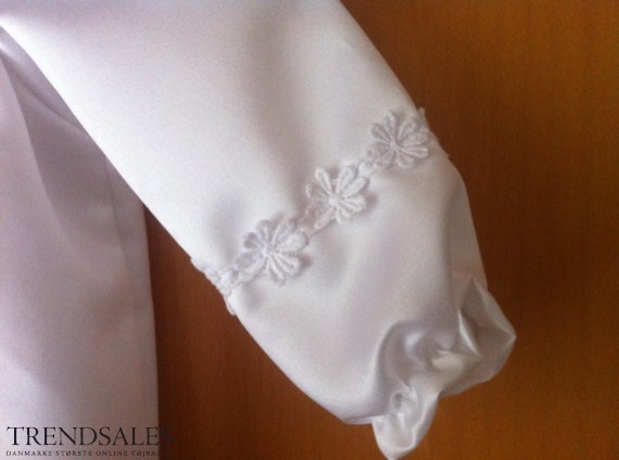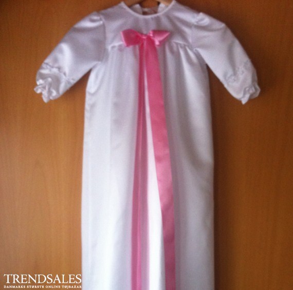 Jeg købte en dåbskjole af en proffessionel syerkse der syer dåbskjoler. Da jeg fik kjolen med posten var den desværre for stor da jeg har tvillingepiger, og de er meget små. Kjolen er en str 3-6 mdr. og er aldrig brugt. den er lavet i hvid brudesatin og der medfølger kyse. Jeg har selv givet 600 for den, men den sælges til 395,-