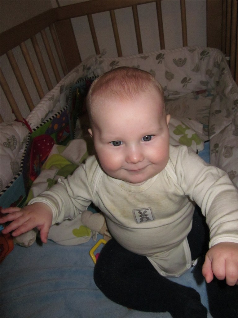 Ja så bliver Silas 7 mdr. i dag d. 11.11.11 Hehehe Og sikke en masse billeder og videoer jeg gerne ville ligge ind af ham så i kunne se, men det bliver kun til billeder, da der er et eller andet galt med video-uploaderen. Men status er at Silas har en fortand for oven der er på vej, så han sover reeeet dårligt om natten og er meget mor og far pylret... Han kan selv stille sig op ved at tage fat i kravlegårdskanten eller hans tremmesengekant, til trods for at vi har hævet gærdet Silas sidder også helt uden hjælp og kan fra liggende stilling perfekt trille op i i siddestilling Som altid er han en glad dreng med masser af krudt i røven og for hulan hvor jeg elsker min lille fjollerik...