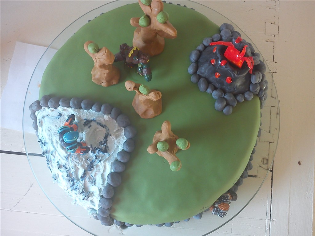 han ville gerne have en kage ud fra temaet; gormiti, eller noget i den stil. det er nogle legetøjsfigur og noget med luft, jord, ild, vand og skov. han ville gerne have der var nogle figur på kagen...