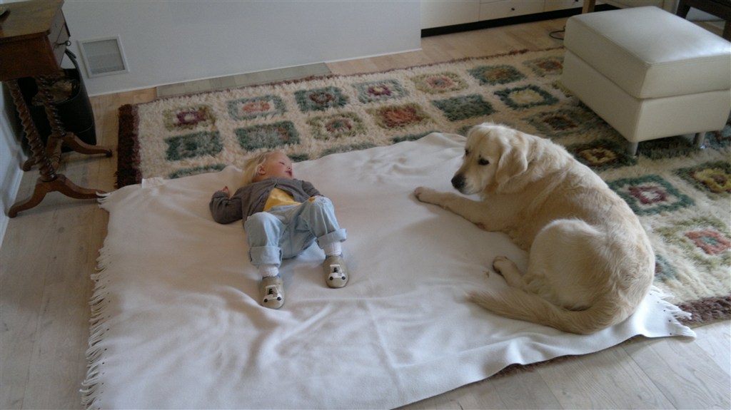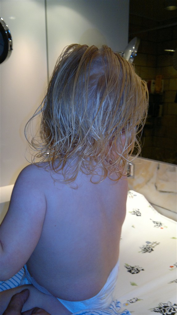 Både fra da det var helt vådt efter badet men også da det var ved at være tørt efterfølgenden