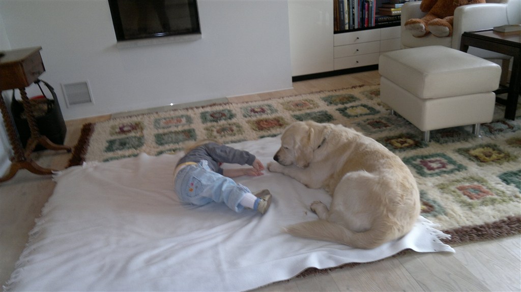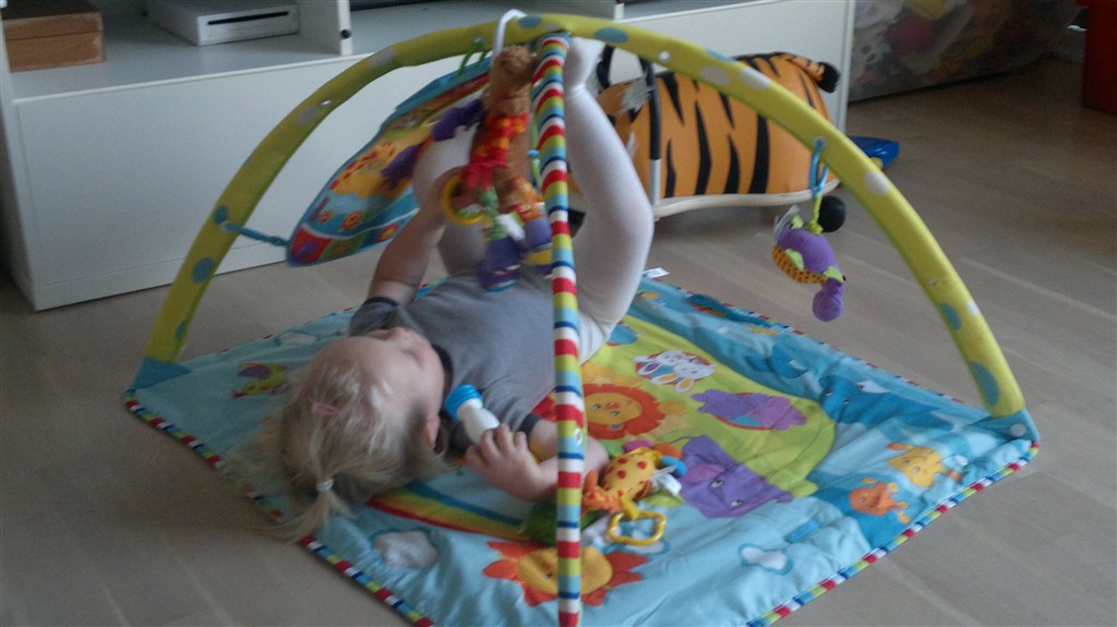 Nå ja... så havde vi besøg af Trine, Torben og"lille" Caia forleden og Laura nød at aktivitetstæppet var kommet ned fra loftet