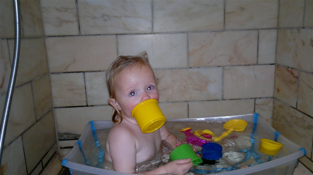 Badebillederne er fra i går... Barnet insisterede på at sidde der i 3 kvarter
