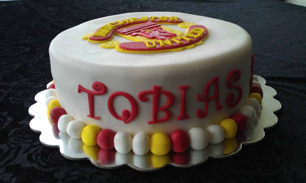 Har printet billedet ud på pc, og klippet det, og så har min mand har skåret det ud i fondant