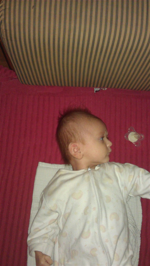 Udover øjenkontakten, skal vi arbejde på at få rettet hende nakke/hoved op... Hun har enormt meget fladt hoved.... Det bliver svært, men det skal nok lykkes... Sp kommer så om 3 uger igen, for at følge op på hendes vægt og fladt baghoved/nakke...