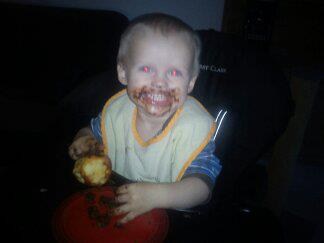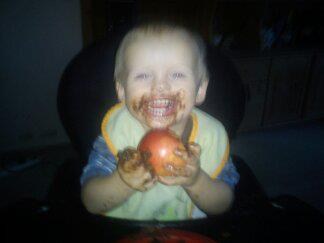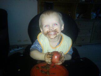 pemiro skriver: Hvor er han sød..Og sjovt med nutella i hele hovedet for så at sidde med et æble... Go humor haha...Glæder mig til det bliver min tur til at opleve de sjove stunder...