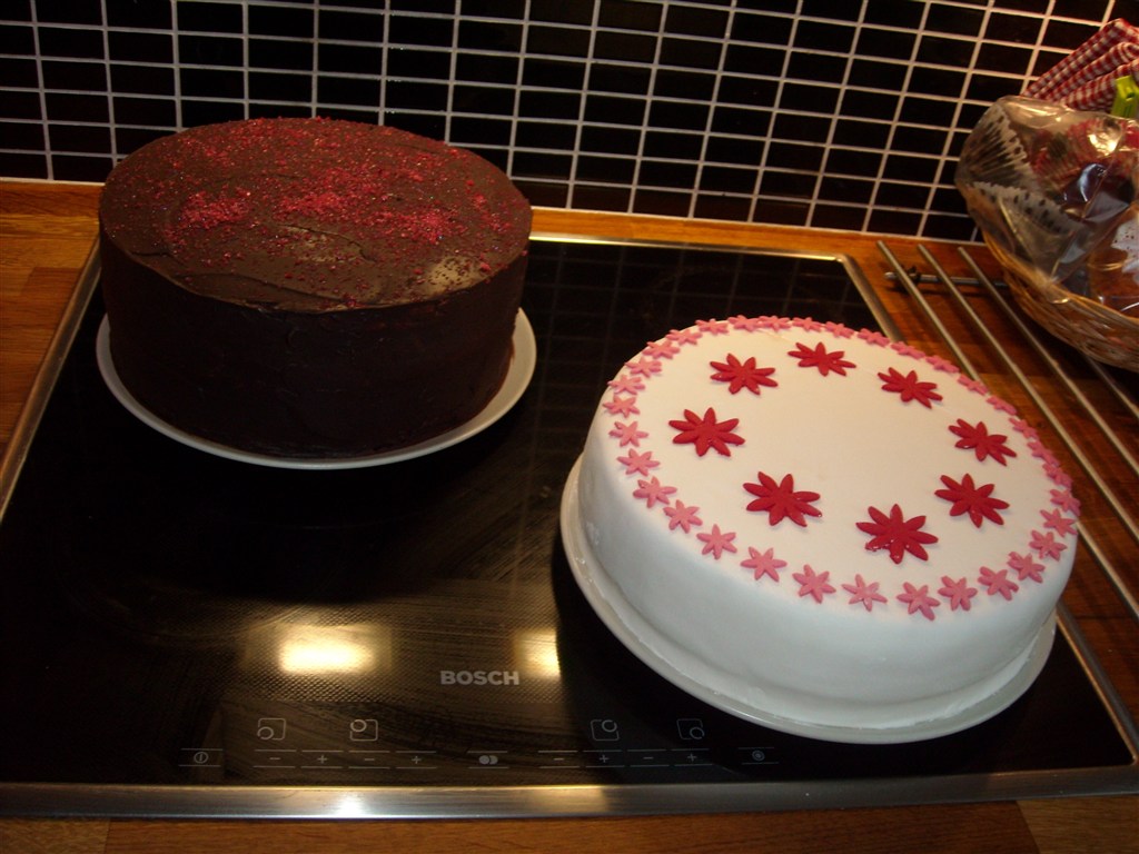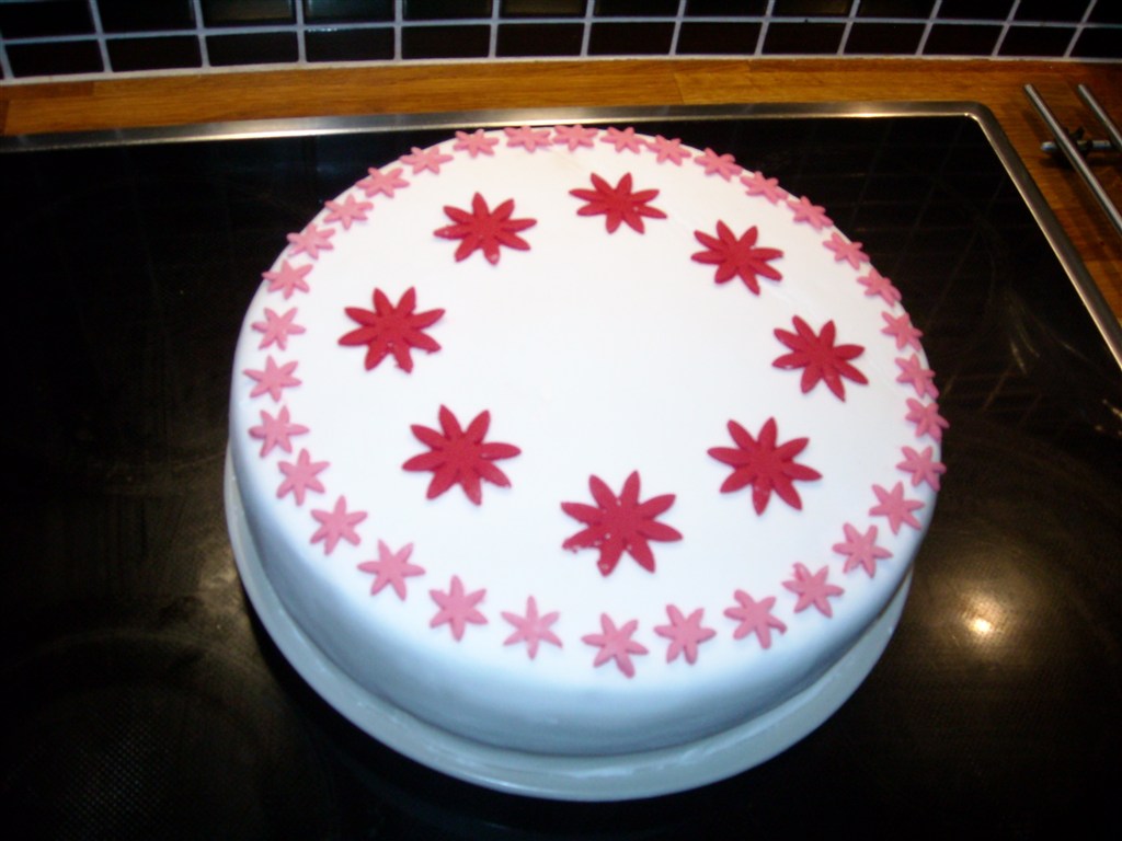 Kagen var ekstrem stor, så til en alm. kage, ville jeg nok kun bruge en halv portion.