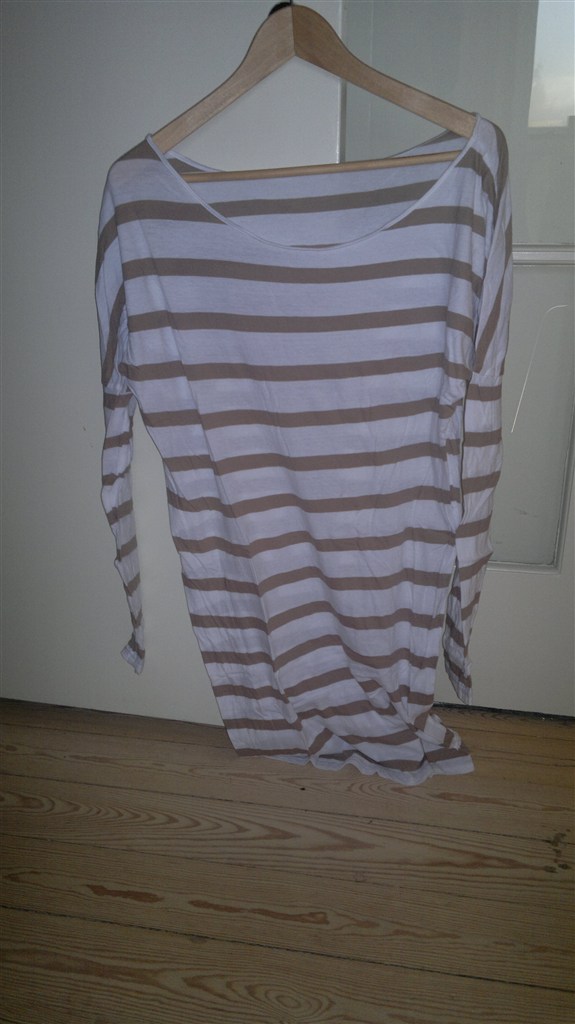 Billede 21: Hvid og beige-stribet trøje i lang model, svarer til str. 42 - aldrig brugt!