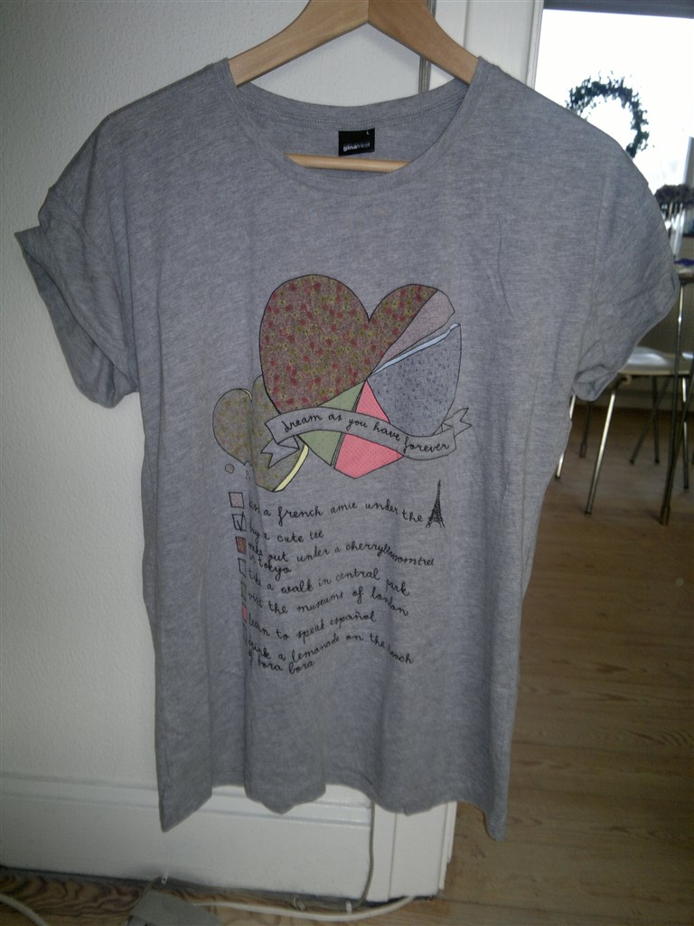 Billede 30: Grå t-shirt med print fra Gina Tricot, str. L - aldrig brugt!