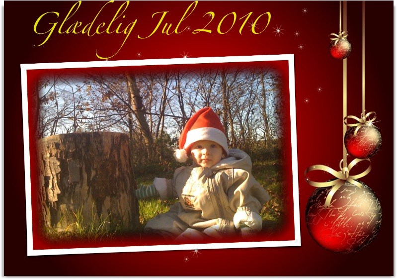 Sikke dejlige julekort! Og øv GitteC78, men mon ikke det lykkedes. Vi har jo heldigvis ikke den første endnu og skulle datoen overskrides, så er der jo stadig rig lejlighed til at tage et billede og sende kortene Måske skal han bare distraheres? En dvd, en bil der bevæger sig.. ud i haven og lad ham udforske... jeg vil også sige, det var så langt nemmere sidste år, Elias rørte sig ikke ret meget ud af pletten. I år var det straks sværere indtil han ville sidde nede i sin trillebør, så sprang mor til... er stadigvæk i tvivl om det skal være dét - men foreløbigt er det og dejlig er han - ville dog helst have et uden sut. Det var ren søndagsafslapning med nattøj og sut langt oppe af dagen - hygge med mor og far - ja ..