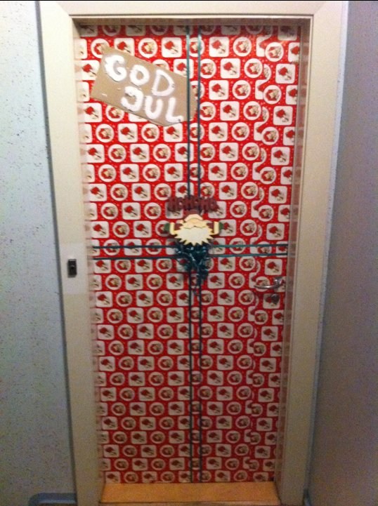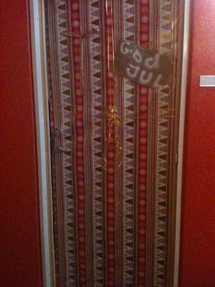 så det jul hos os.. i år er vores hoveddør igen pakket ind..