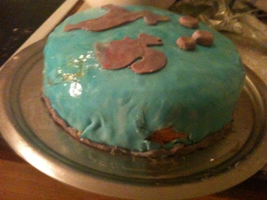 Ja, nu fik jeg endelig taget mig sammen til at lave min første fondant kage. Og her kommer lige nogle billeder.