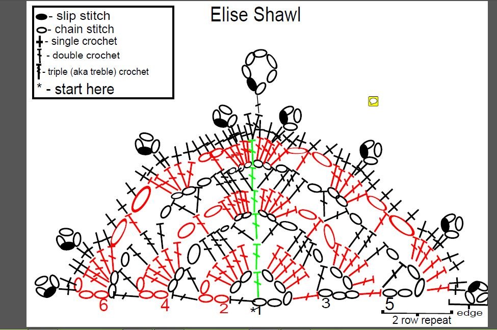 Jeg forstår det sådan at jeg skal lave 5 luftmasker og en stangmaske (den grønne). Så skal jeg lave endnu en stangmaske, og vha. 2 luftmasker samle det i den første stangmaske? Men er ikke helt sikker på det er rigtig forstået, eller hvordan jeg i så fald kommer videre?